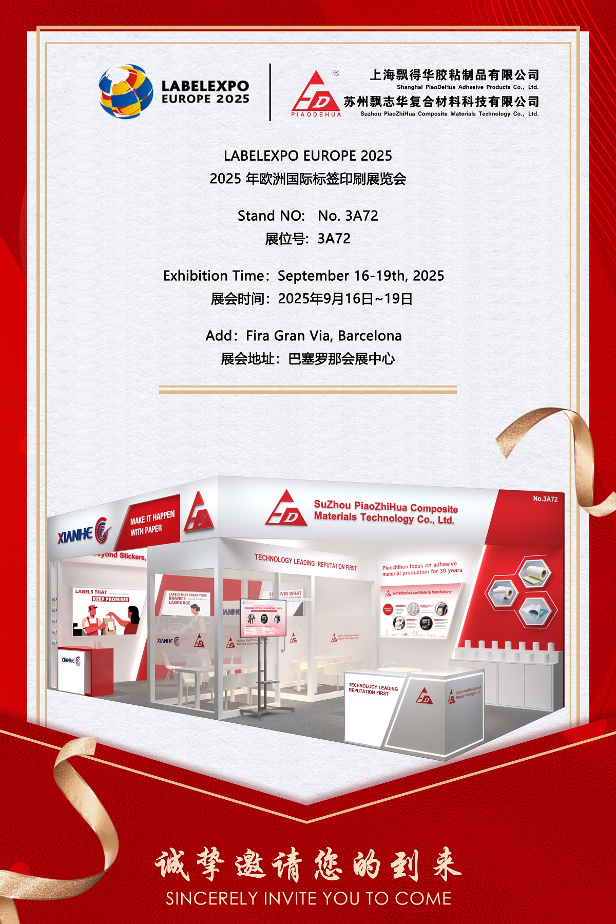 Suzhou Piaozhihua Composite Materials Technology Co., Ltd. s potěšením oznamuje svou účast ve společnosti Labexpo Europe 2025, přední mezinárodní veletrh pro štítky a tisk obalů, který se koná od 16. do 19. září 2025 ve Fira Gran Via v Barceloně ve Španělsku. Jako důvěryhodný výrobce vysoce výkonných materiálů s vlastním přijímáním s více než třemi desetiletími průmyslových zkušeností představí Piaozhihua své inovativní portfolio produktů ve stánku Č. 3A72 . Na výstavě se představí pokročilá adhezivní řešení přizpůsobená různým aplikacím napříč spotřebním zbožím, logistikou a průmyslovým sektorem.